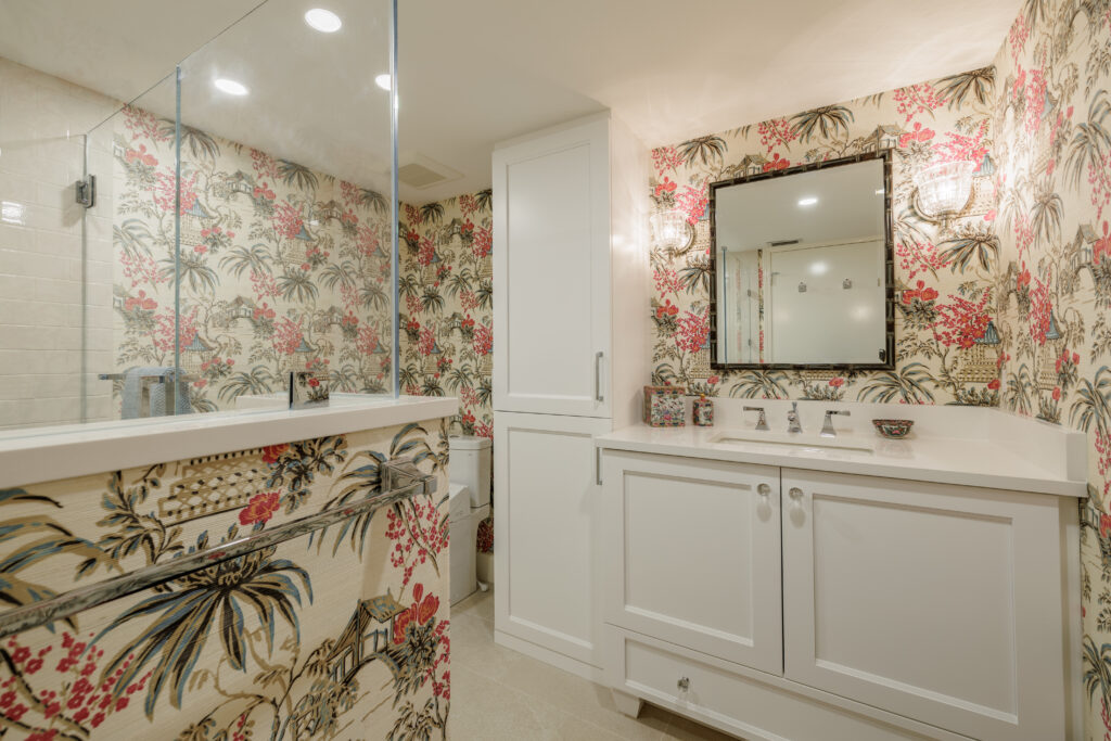 Colorful wallpaper gives a pop of personality to the Longboat Key condo we worked on with Chic on the Cheap.