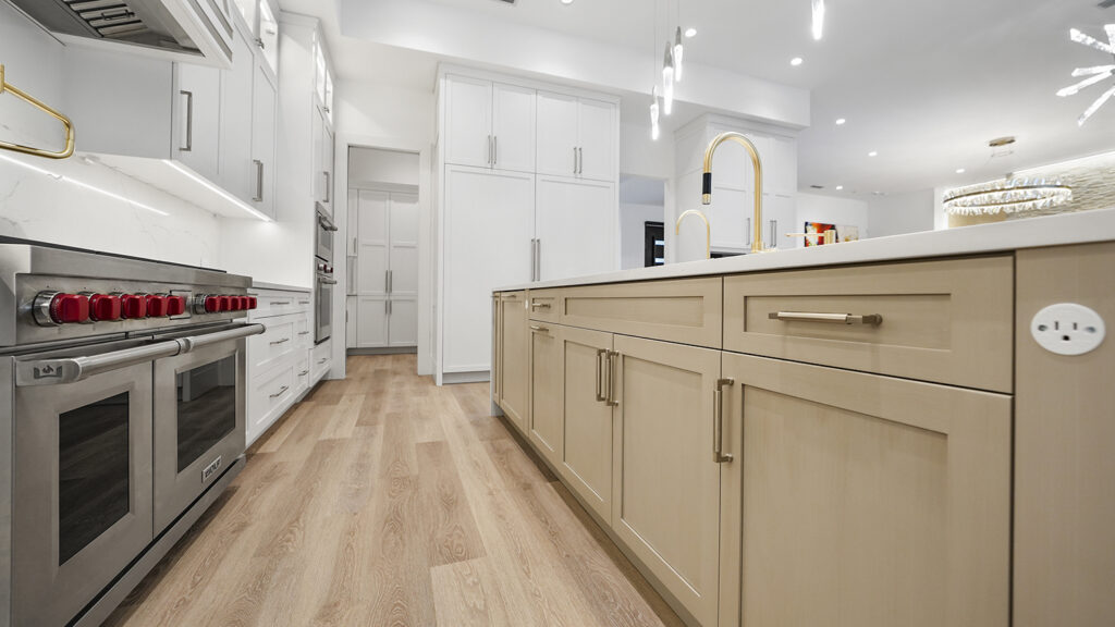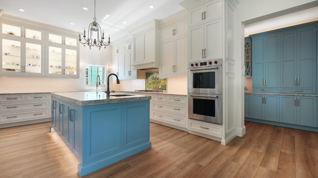 Our client’s stylish seaside kitchen juxtaposes the warmth of hardwood with the timeless elegance of white. Its pantry, with its painted custom cabinetry, under-the-counter fridge and storage for dishes, cookbooks and more, is a natural extension—beautiful while also being totally functional. See the full project here.