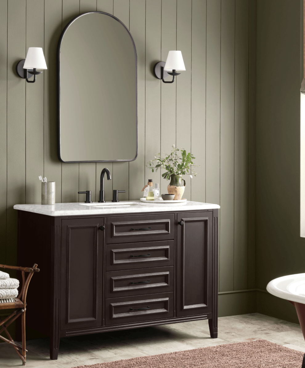 Pictured above on vanity: Sherwin-Williams’ Garden Gate